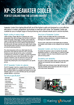 The KP-25 Seawater Cooler has a capacity of up to 2150 liters per hour of chilled seawater at 0 °C. Minimum required salinity is 2.6% NaCl. If sufficient salinity is not available, brine systems can be used.